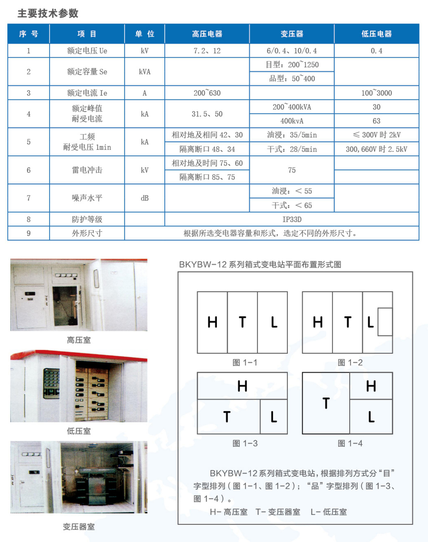 BKYBW-12系列交流箱式變電站,是將高壓電器設(shè)備、變壓器、低壓電器設(shè)備等組合成緊湊型成套配電裝置,用于城市高層建筑、城鄉(xiāng)建筑,居民小區(qū)、高新技術(shù)開發(fā)區(qū)、中小型工廠、礦山油田以及臨時施工用電等場所,作配電系統(tǒng)中接受和分配電能之用。BKYBW-12系列箱式變電站,具有成套性強、體積小、結(jié)構(gòu)緊湊、運行安全可靠、維護方便、以及可移動等特點,與常規(guī)土建式變電站相比,同容量的箱式變電站占地面積通常僅為常規(guī)變電站的1/10~1/5,大大減少了設(shè)計工作量及施工量,減少了建設(shè)費用。在配電系統(tǒng)中,可用于環(huán)網(wǎng)配電系統(tǒng),也可用于雙電源或放射終端配電系統(tǒng),是目前城鄉(xiāng)變電站建設(shè)和改造的新型成套設(shè)備。
