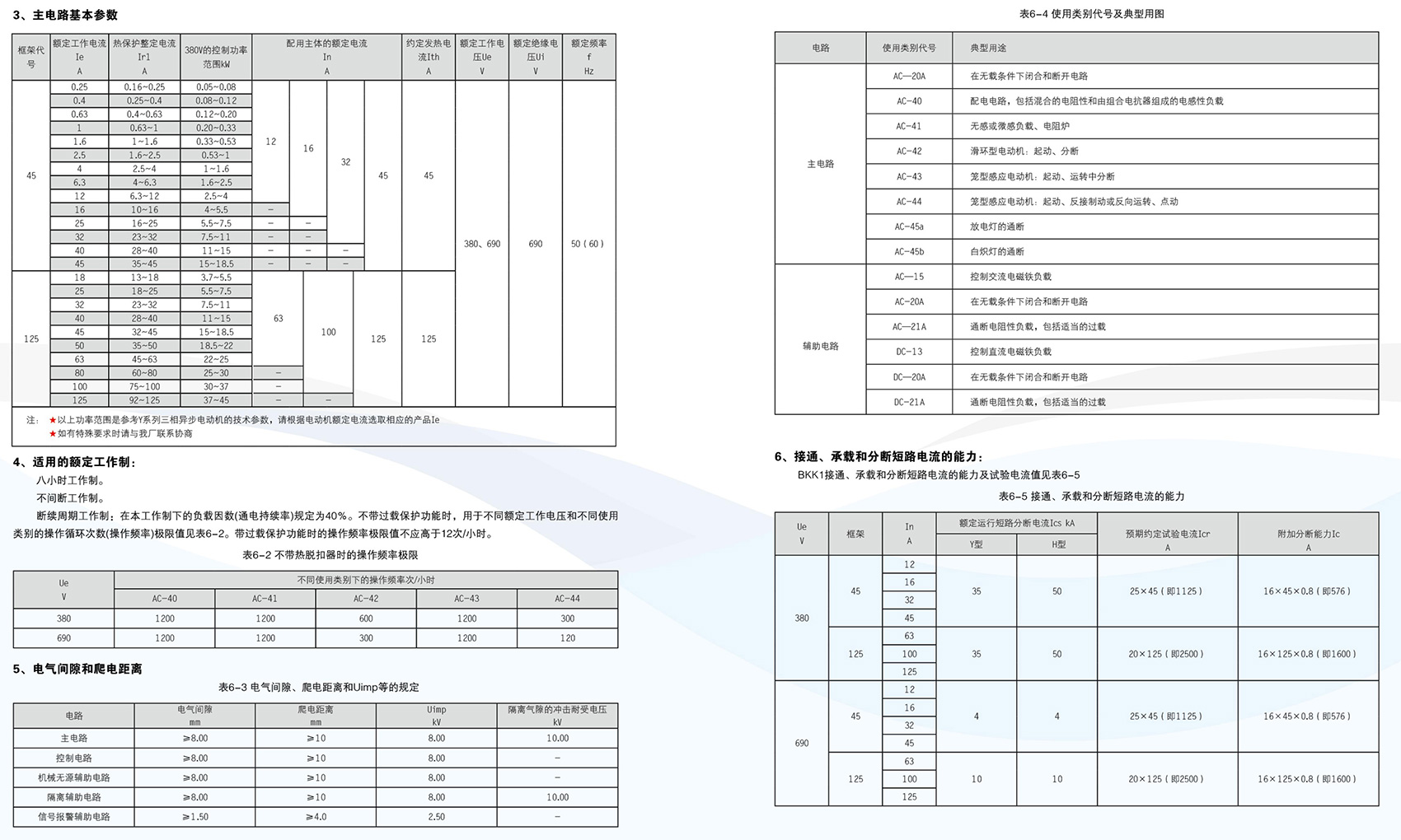 BKK1系列控制與保護(hù)開(kāi)關(guān)電器主要用于交流50Hz(60Hz)、額定電壓至690V、額定工作電流自0.4A至125A的電力系統(tǒng)中接通、承載和分?jǐn)嗾l件(包括規(guī)定的過(guò)載條件)下的電流,且能夠接通、承載并分?jǐn)嘁?guī)定的非正常條件(如短路)下的電流。BKK1系列采用模塊化的單一產(chǎn)品結(jié)構(gòu)形式,集成了傳統(tǒng)的斷路器(熔斷器)、接觸器、過(guò)載(或過(guò)流、斷相)保護(hù)繼電器、起動(dòng)器、隔離器、電機(jī)綜合保護(hù)器等多種傳統(tǒng)的分離元器件。產(chǎn)品具有遠(yuǎn)距離自動(dòng)控制與就地人力控制兼有的方式進(jìn)行控制操作的功能,具有協(xié)調(diào)配合的時(shí)間-電流保護(hù)特性,具有控制與保護(hù)自配合、短路后連續(xù)運(yùn)行,具有分?jǐn)嗄芰Ω撸w弧距離小、壽命長(zhǎng),具有保護(hù)整定電流均可調(diào)的特性,操作方便、配套模塊多樣齊全等優(yōu)點(diǎn),可以實(shí)現(xiàn)對(duì)電動(dòng)機(jī)負(fù)載、配電負(fù)載的控制和保護(hù)。產(chǎn)品符合GB/T 14048.9《控制與保護(hù)開(kāi)關(guān)電器》標(biāo)準(zhǔn)。