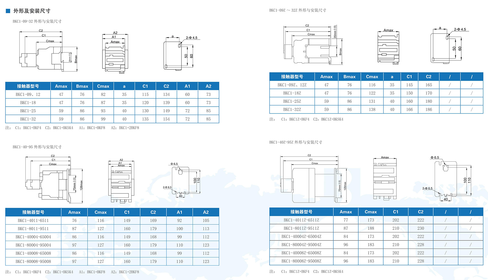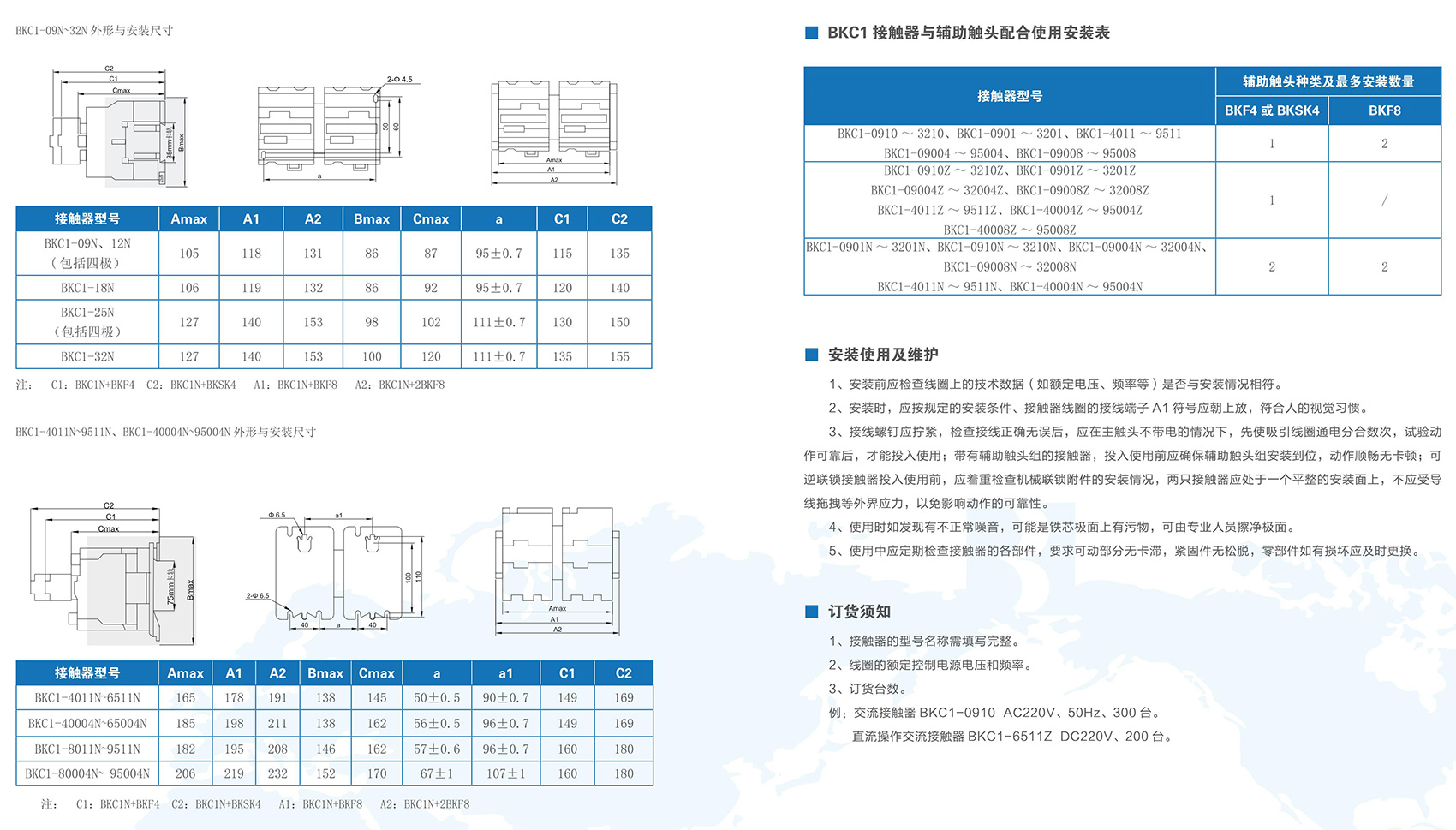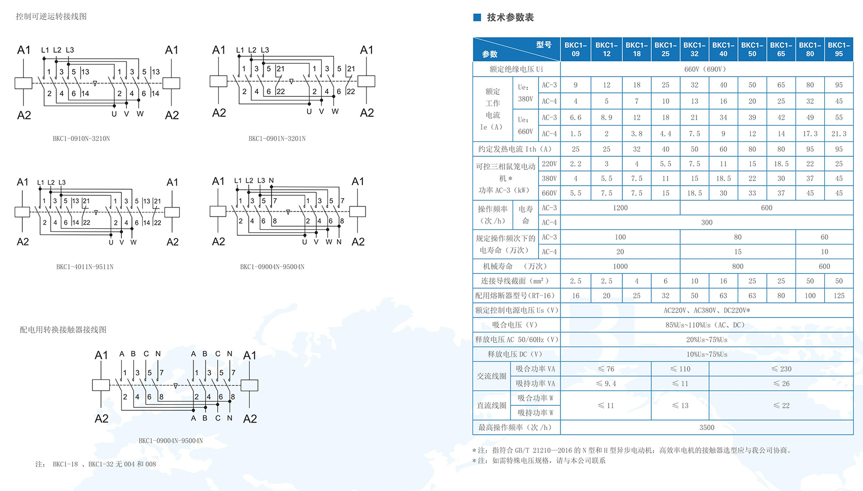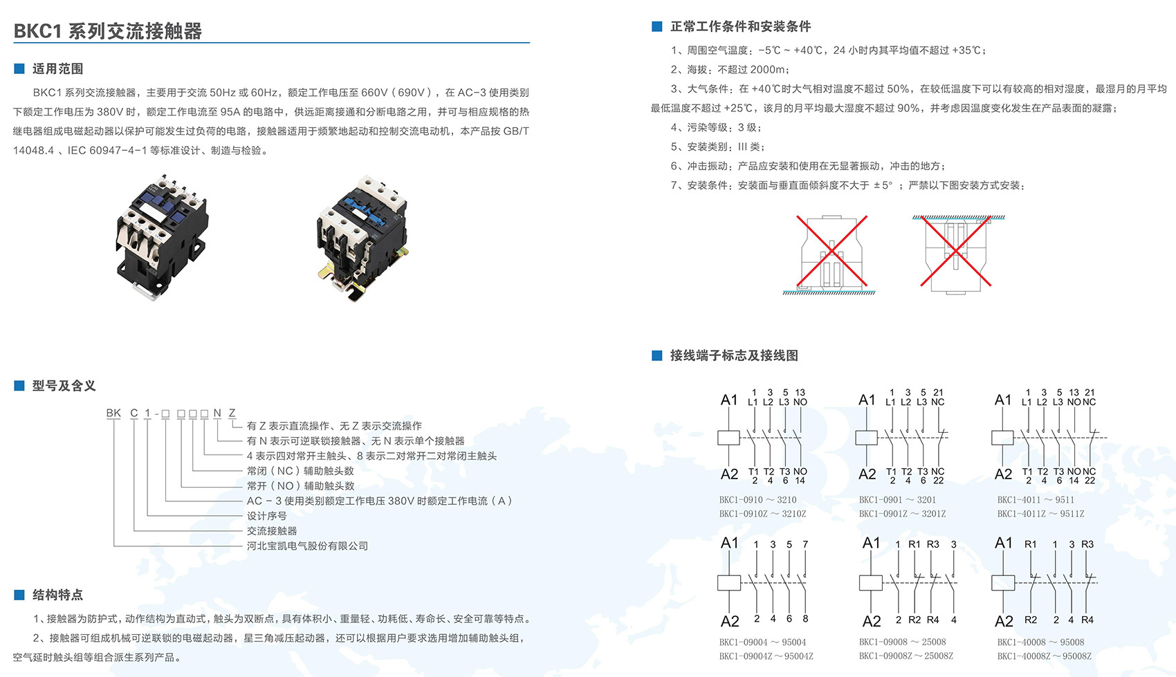 BKC1-09~95系列交流接觸器,主要用于交流50Hz(或60Hz),額定絕緣電壓為690V,在AC-3使用類別下額定工作電壓為380V時額定工作電流為9A~95A的電路中,供遠距離接通與分斷電路及頻繁起動、控制交流電動機;并可與適當的熱過載繼電器組成電磁起動器,以保護可能發(fā)生過負荷的電路。產品符合標準:IEC 60947-4,GB/T 14048.4,IEC 60947-5,GB/T 14048.5